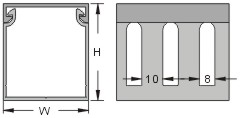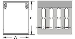 构造: | 由槽底及槽盖两部份组成,槽底两侧设出线孔,以组合后外部之宽、高为规格标准,每侧设有两条折线。 | |