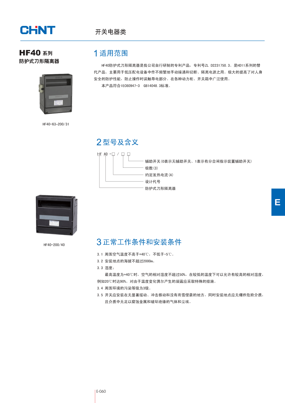 是我公司自行研制的专利产品,专利号ZL D2231750.3。是HD11系列的替代产品。主要用于低压配电设备中作不频繁地手动接通和切断、隔离电源之用。极大的提高了对人身安全的防护性能,防止操作时误触导电部分。在各种动力柜、开关箱中广泛使用。本产品符合IEC60947-3 GB14048.3标准。 |