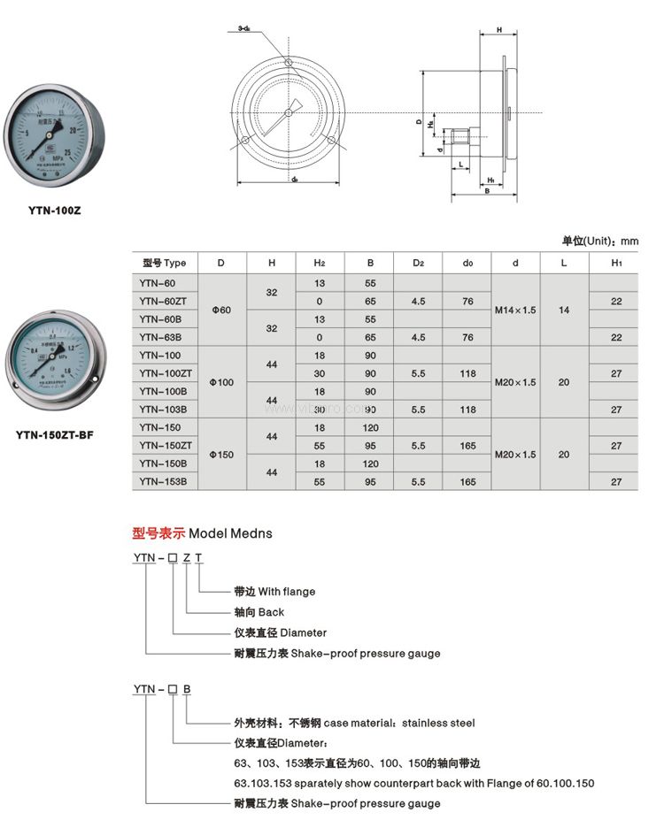 产品标题:YTN-103B耐震压力表