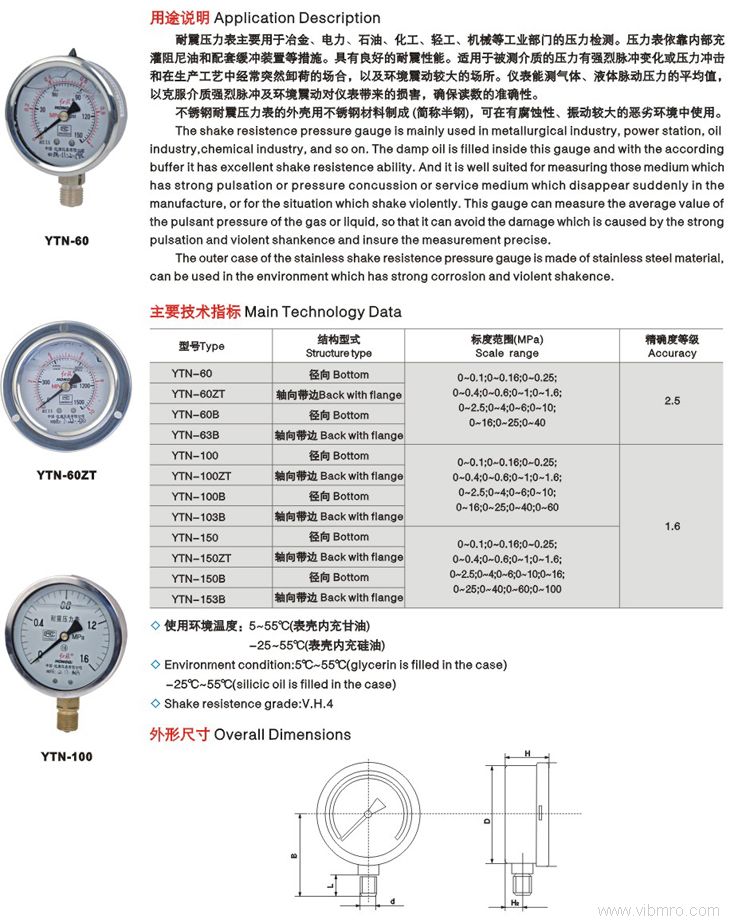 YTN-60ZT耐震压力表